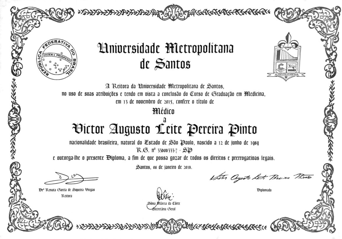 - Graduação em Medicina. Universidade Metropolitana de Santos, UNIMES, Santos, Brasil